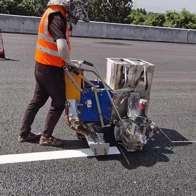 two-component marking series is divided into spraying and scraping two construction processes, two coatings with the aid of two pumps or two paint barrels after mixing chemical reaction to form marking. Compared with the hot melt marking, the two-component marking construction has the advantages of environmental protection, high wear resistance, good reflectivity, long service life and easy construction.